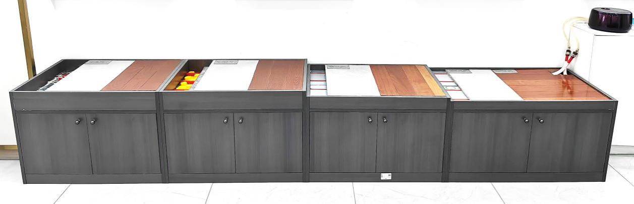 天脉远红设计的差异化地暖体验凳,按国家地暖标准工艺制作,让不同的地暖末端在同一热源水温下现场测试体验对比,体验凳包括4组定制地柜,从左到右依次展示:保温板湿式地暖湿贴地砖铺地板、蘑菇板湿式地暖湿贴地砖地板、铝板干式地暖湿贴地砖铺地板、铝板干式地暖干贴地砖铺地板。按标准工艺,湿式地暖先回填再贴砖,干式地暖无需回填直接贴砖。搭配功率400W内置微循环泵的小型暖水机,插电即用,可模拟燃气壁挂炉和空气源不同水温,直观看到、摸到、体验到不同地暖的工艺结构及数据差异,让业主快速了解普通湿式地暖和铝板干式地暖在安装厚度、升温速度、表面温度及背面透热节能等方面的核心对比优势,让暖通企业站在行业高度做好地暖知识的专业传播,可帮助经销商销售团队实现客户邀约和快速签单的高效营销,大幅提高地暖、两联供、五恒系统的销售业绩,帮扶暖通公司实现差异化价值营销并摆脱低价竞争的内卷困境。